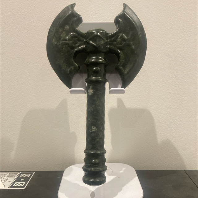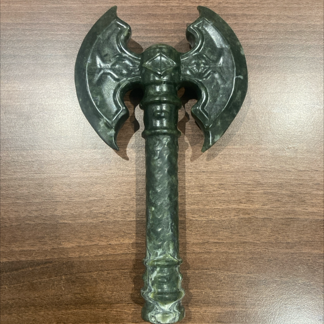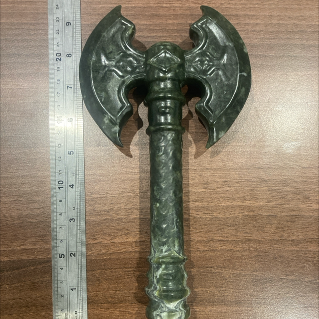 Discover the exquisite craftsmanship of this double-bladed hand-carved green jade axe, a stunning 9-inch piece that merges artistry with elegance. This unique axe not only showcases intricate details of jade carving but also serves as a striking decorative item, perfect for any collection or display. Whether you're a lover of Jade or seeking a remarkable gift, this Jade axe is sure to impress with its vibrant colour and elegant design.