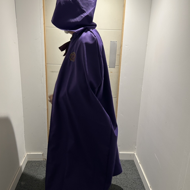 Wonderful Purple West of England cloth cloak with A Triple Goddess Design, nice and heavy handmade with a tie-able bow on the front with a large hood and a 63 inch drop from the shoulders to the floor, Fabulous for all your Witchy needs!