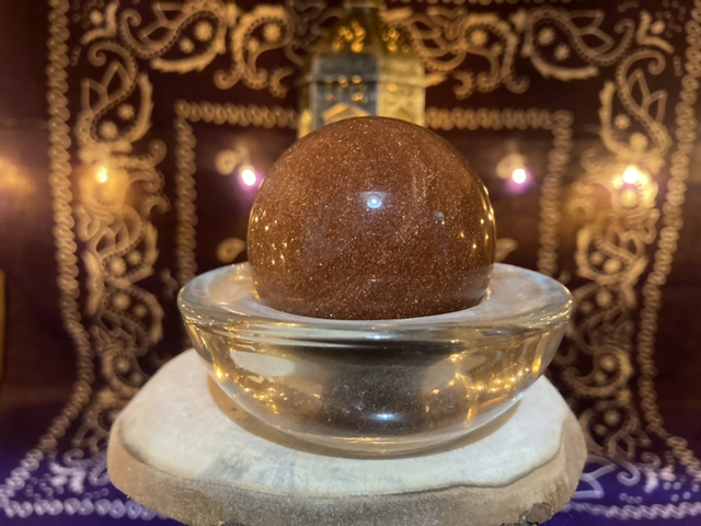 Here we have an amazing Gold Sandstone Crystal Sphere Carving weighing 155g and is 4.9cm in width.