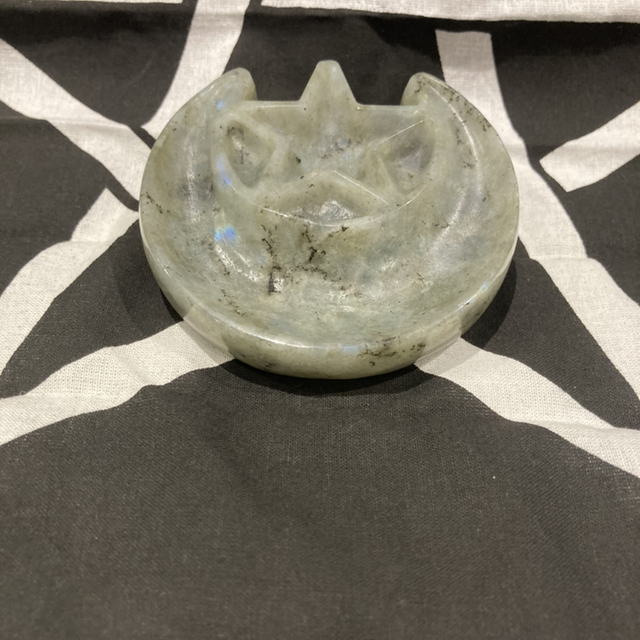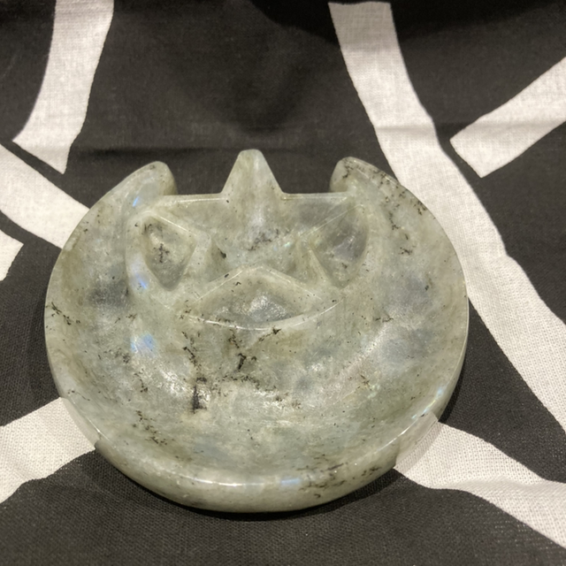 Labradorite Crescent Moon and Star Hand Carved Bowl.