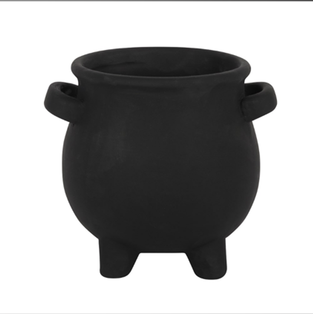 This black terracotta cauldron pot with silver pentacle design makes a unique and witch-approved way to grow plants and flowers in the home.