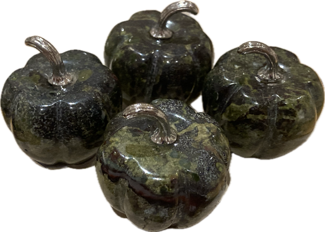 Beautifully carved moss and tree, agate Pumpkins with silver stalks.
