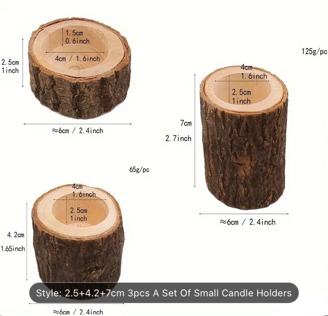 3-Piece Set of Rustic Tree Bark Candle Holders, Wooden Tabletop Candle Stands for Christmas, Halloween or any Party Decorations. 🧙🏻‍♂️💚🕯️