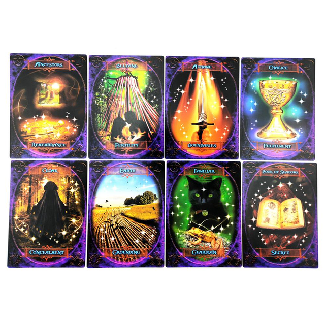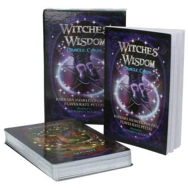 This Witches' Wisdom Oracle Cards kit includes 48 silver-gilded oracle cards encapusalting the wisdom of the Wise: healers, teachers, herbalists, and gifted oracles who are the custodians of the magical potency of the Craft. Also includes a guidebook with sample spreads, easy to remember and repeat invocations, information about the cards, and much more.